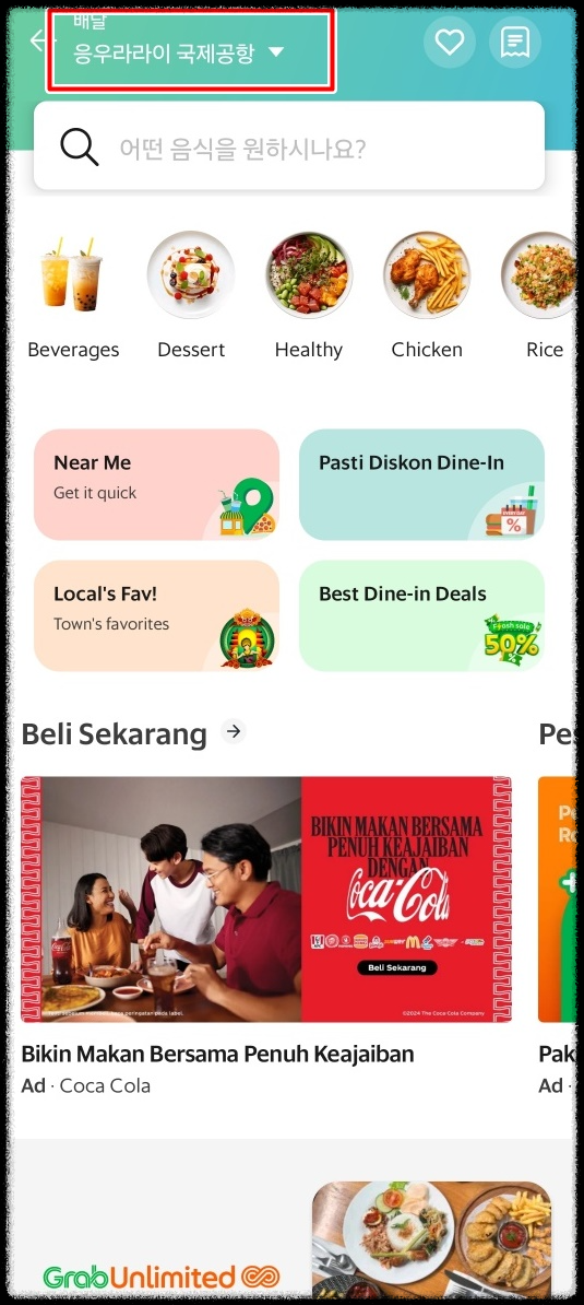 그랩 이용해서 배달음식 주문하기